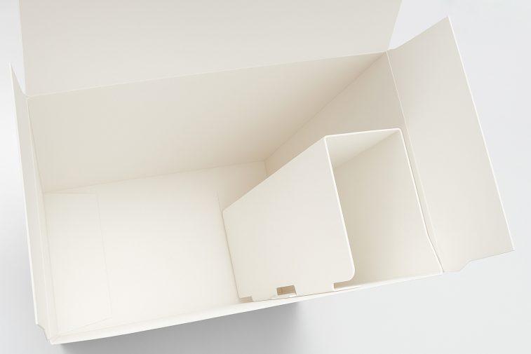Похожий тип внутренней вставки – подиум. Он помогает зафиксировать в объемной пачке флакон небольшой высоты. Иногда подиумов может быть два, и в них делают отверстия, чтобы первичная упаковка с содержимым находилась строго по центру.