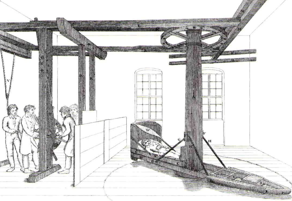 В те времена среди медиков было распространено мнение, что состояние шока и стресса способно привести больного в чувство и избавить от бредовых идей. «При лечении психически больных считается полезным вызывать сильное чувство дискомфорта. Это достигается отчасти за счёт страха, вызываемого самим видом этой машины и пониманием ее предназначения, а отчасти — страхом быть выброшенным из нее и получить опасную травму», — так описывал лечение на вращающейся кровати глава берлинской больницы «Шарите» доктор Хорн в 1818 году.