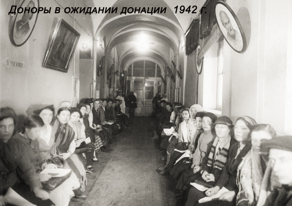 В Ленинграде, несмотря на голод и болезни, люди сдавали кровь для раненых. Главным центром сбора стал Ленинградский институт переливания крови. Ежедневно туда проходило от 300 до 3000 доноров. В 1941 году в доноры записалось 35 856 человек, в 1942 году – 56 959 человек. Фронт в годы войны получил из блокадного Ленинграда 144 тонны крови.