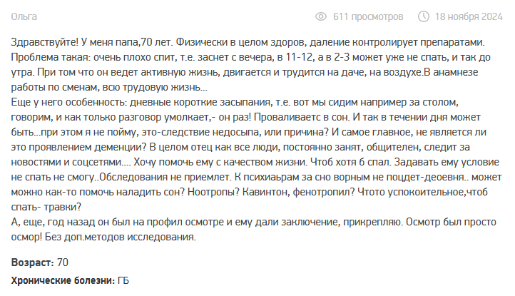 Характерные жалобы на нарушения сна у пожилых людей. Источник: интернет-форумы.