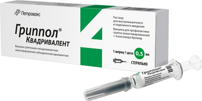 - Четырехвалентные: «Ультрикс Квадри» («Национальная иммунобиологическая компания» ГК Ростех), «Гриппол Квадривалент» (НПО «Петровакс Фарм»).